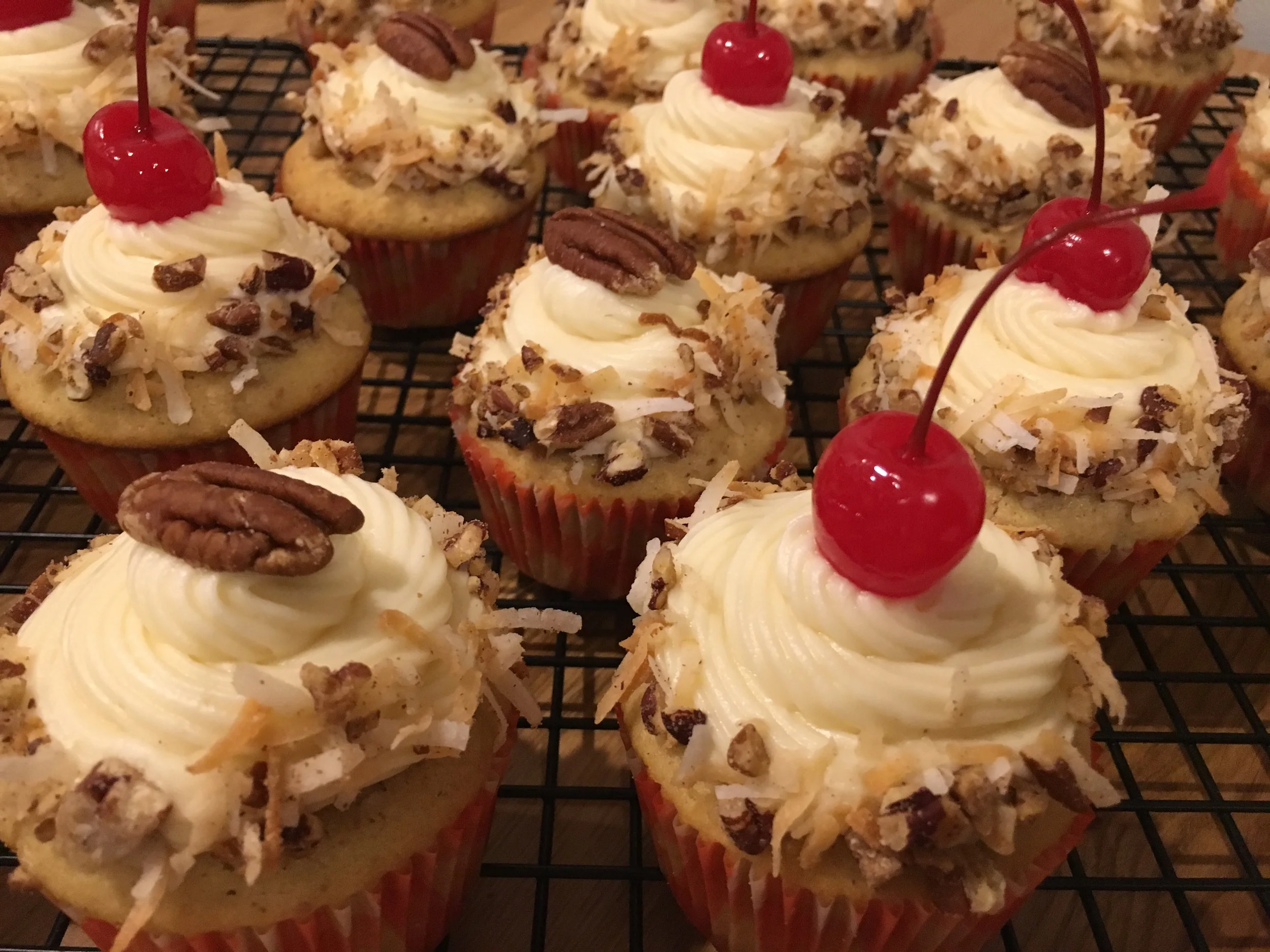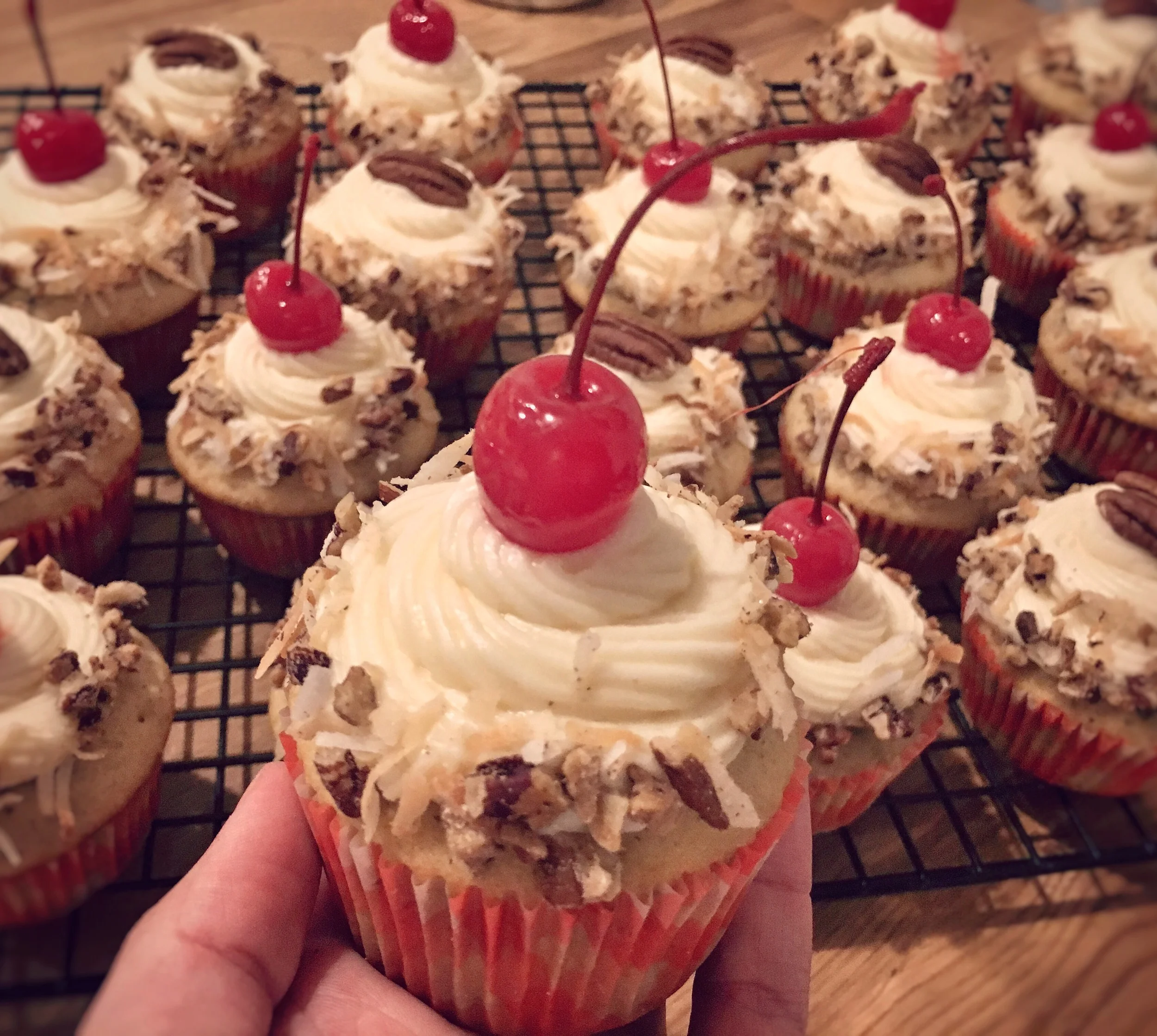 Admittedly, I don't have a drop of Italian blood in me and didn't even know this was a thing but OH MY GOD are they good. Coconut, pecans, cream cheese frosting and a cherry on top - yum. I used a recipe from Cooking Classy (thank you Sarah for the Italian cupcake research) and am really happy with the result!